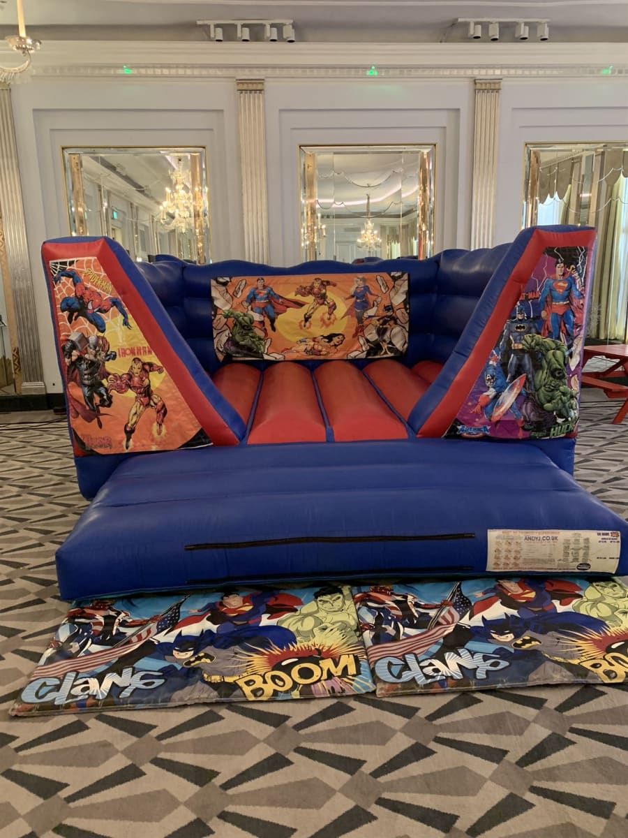 What young boy doesn't dream of being a superhero? Well heres a castle that will bring them that little bit closer to that dream. Our amazing Superhero low height castle! A large bouncing area and low height so it fits in almost any venue! this is sure to put a smile on your little superheroes face!