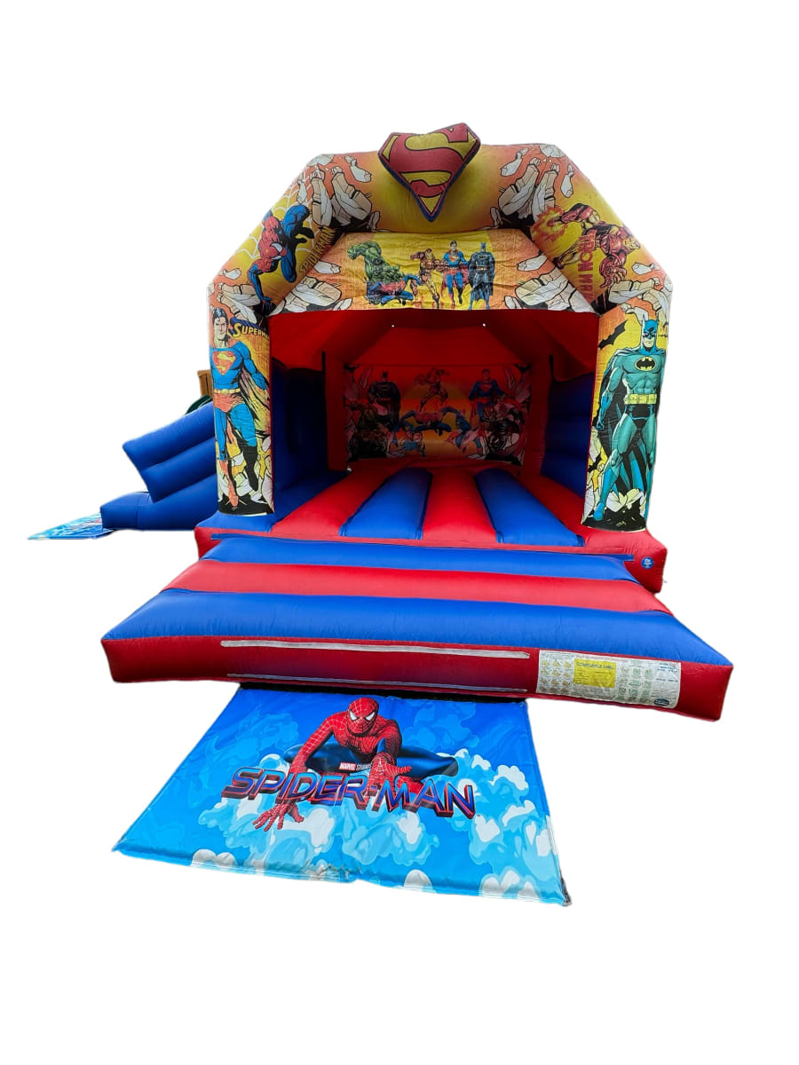 What young boy doesn't dream of being a Superhero? Well heres a castle that will bring them that little bit closer to that dream. Our amazing Superhero Bounce & Slide! A large bouncing area and a slide to the side of the castle this is sure to put a smile on your little superheroes face!