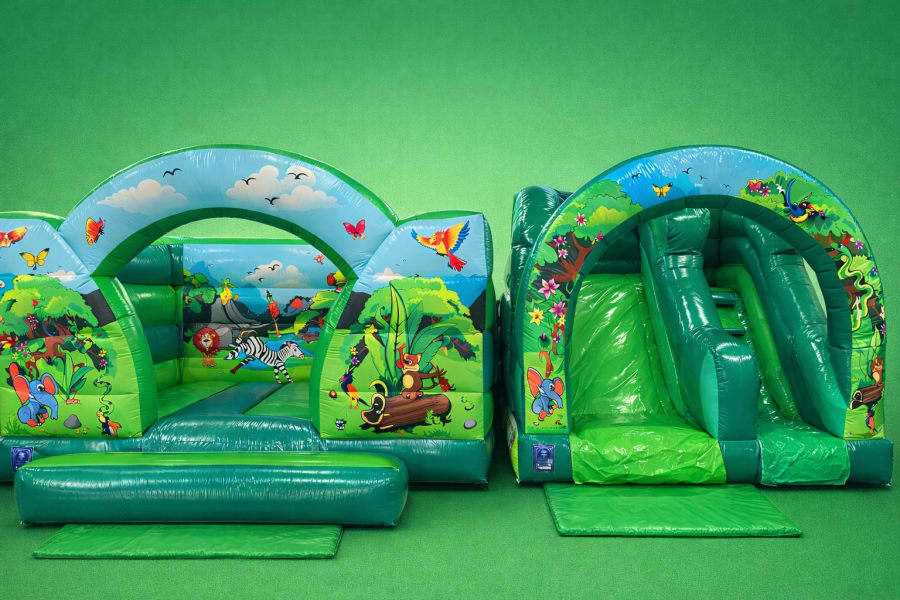 Bring the ultimate jungle adventure to your party with our fantastic Jungle Kingdom Bounce & Slide Package! Perfect for toddlers and younger children, this colourful inflatable set combines a fun bouncy castle with a matching jungle slide, creating hours of entertainment for little explorers.
